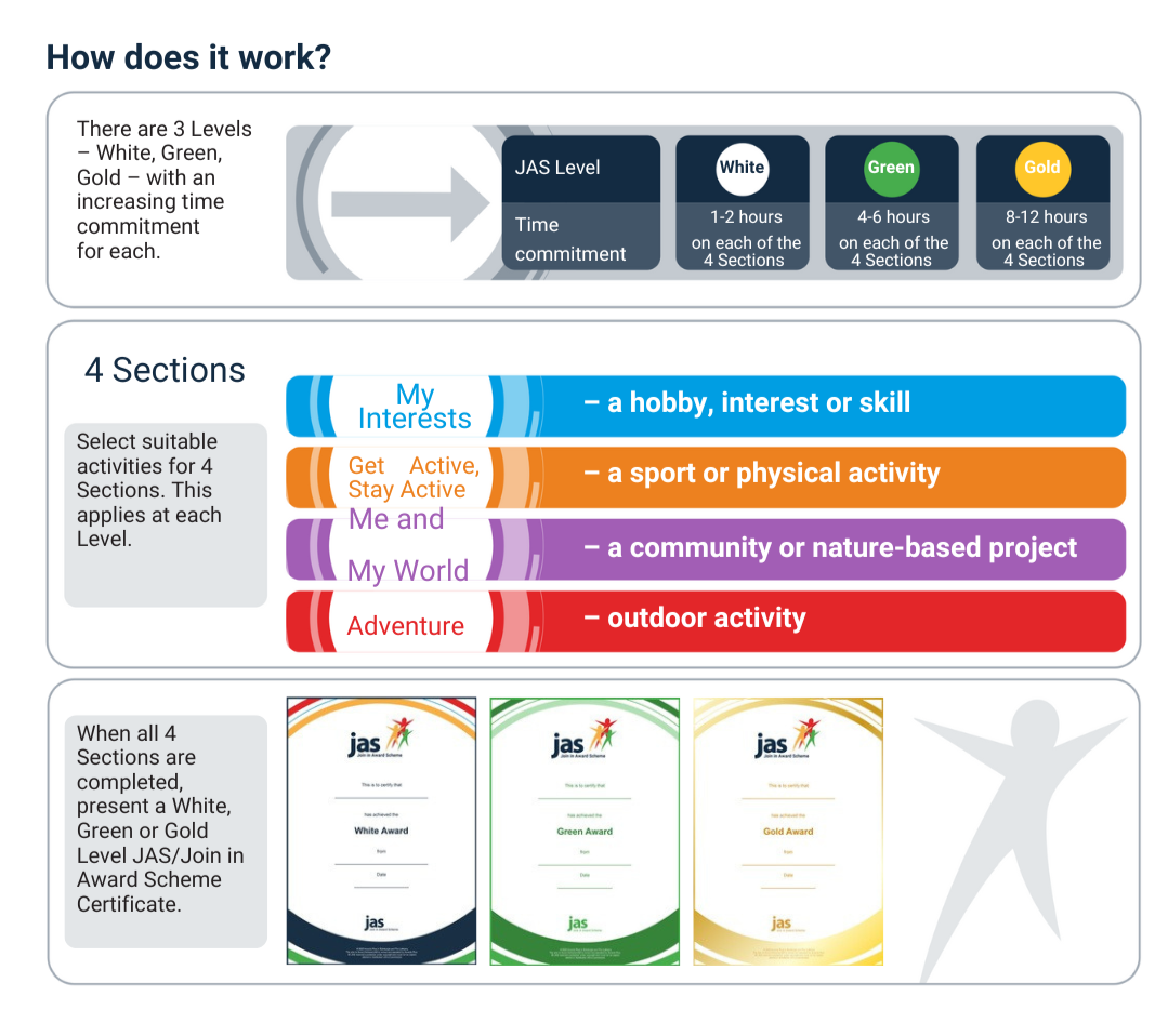 The Join in Award Scheme evolved from the Junior Award Scheme for Schools (known as JASS) in 2024. The Green Team assumed responsibility for the award in 2025.